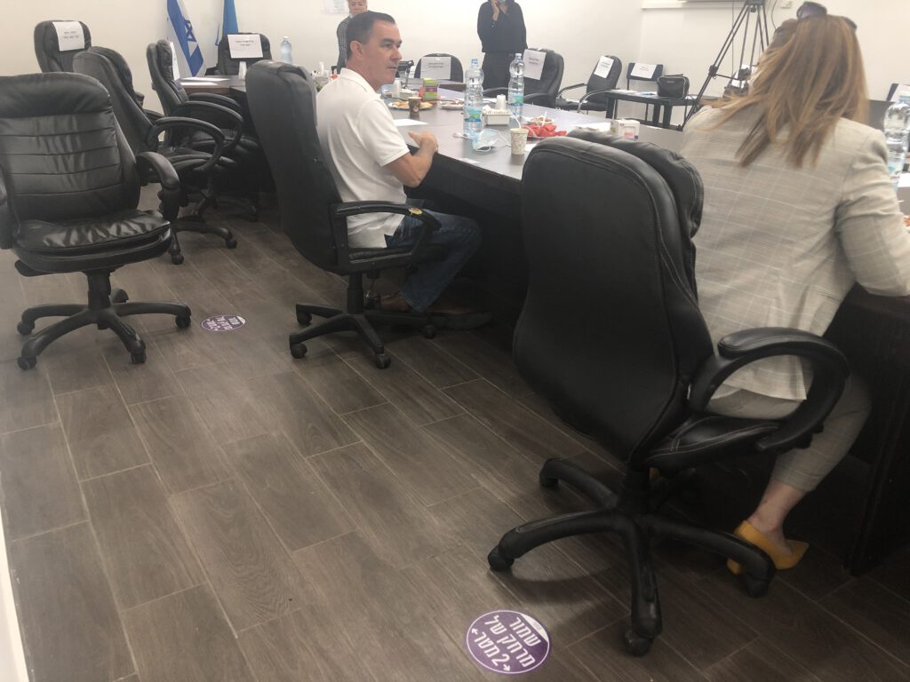 הישיבה התנהלה עם הקפדה של הנחיות משרד הבריאות לשמירה על מרחק בפיקוח של ממונה קורונה. הביקורת על הפרת הנחיות הייתה מופנית בעיקר כלפי חברי האופוזיציה ד"ר אביבה זריהן ויצמן ואלי זפרני כאשר כל חברי מועצת העיר ישבו בכיסא על פי הסימון שנקבע עבורם. חברי האופוזיציה טענו כי הם שמרו על הנחיות לשמירה על מרחק והטענה להפרת ההנחיות היא רק תירוץ לא לדון בנושא שעל סדר היום, סגירה של בית הספר יצחק הנשיא.