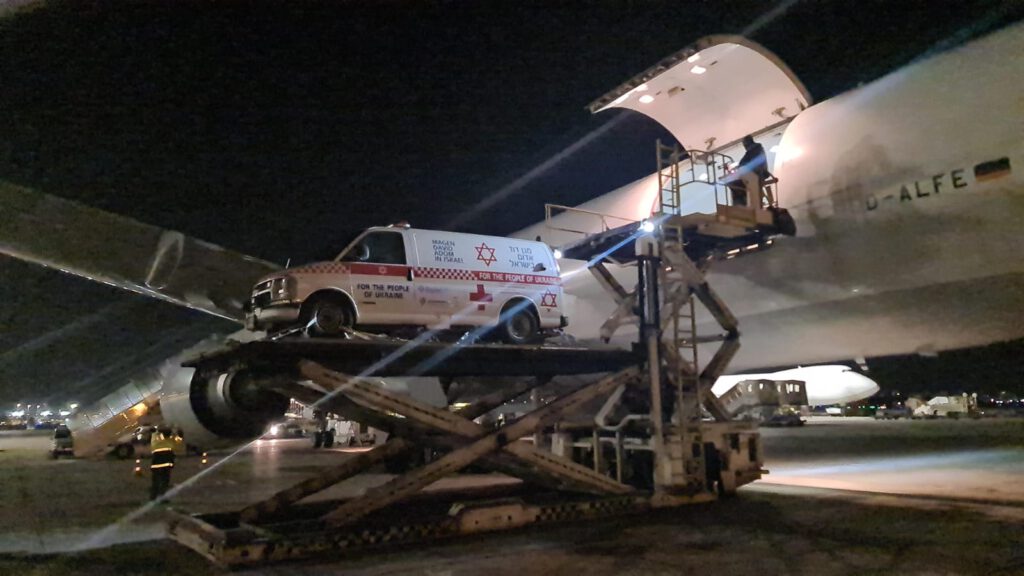 במסגרת היוזמה שיוצאת לפועל בסיוע חבר הכנסת אלכס קושניר (ישראל ביתנו), ובסיוע של הסוכנות היהודית הודות לתרומה של נוצרים אוהבי ישראל מקוריאה וגורמים נוספים שנרתמו לסייע בעלות מימון ההטסה, הטיס מד"א את האמבולנסים הממוגנים למען צוותי הרפואה שפועלים בשטח ומטפלים באזרחים הפצועים.
